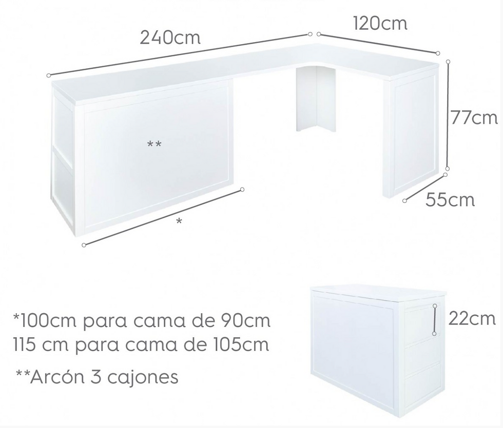 ESCRITORIO JUVENIL CON ARCÓN Y MÓDULO. LINEAL-066